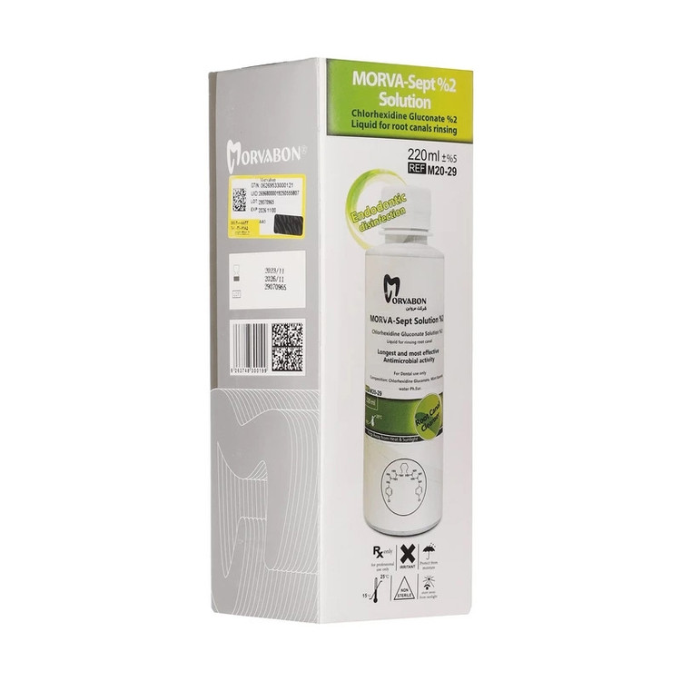 Morva Sept یک محلول کلرهگزیدین ۲٪ با کیفیت پایدار است که برای ضدعفونی و شستوشوی کانال ریشه مورد استفاده قرار میگیرد. کلرهگزیدین به دلیل خاصیت باکتریسید قوی، نقش مهمی در کاهش بار میکروبی کانال دارد و بهعنوان یک ماده کمکی مؤثر در کنار سایر محلولهای شستوشو استفاده میشود.