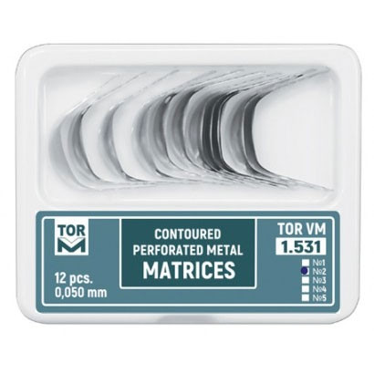 نوار ماتریس ایوری بالهدار کوچک Tor VM مدل 1.531 (2) برای ترمیمهای خلفی، بهویژه کلاس II، طراحی شده و با داشتن بالههای کناری، پایداری بالایی روی دندان ایجاد میکند. این ساختار بالهدار سبب میشود نوار بدون لغزش در محل قرار گیرد و تماس پروگزیمال مناسب و قابل اعتماد ایجاد شود.