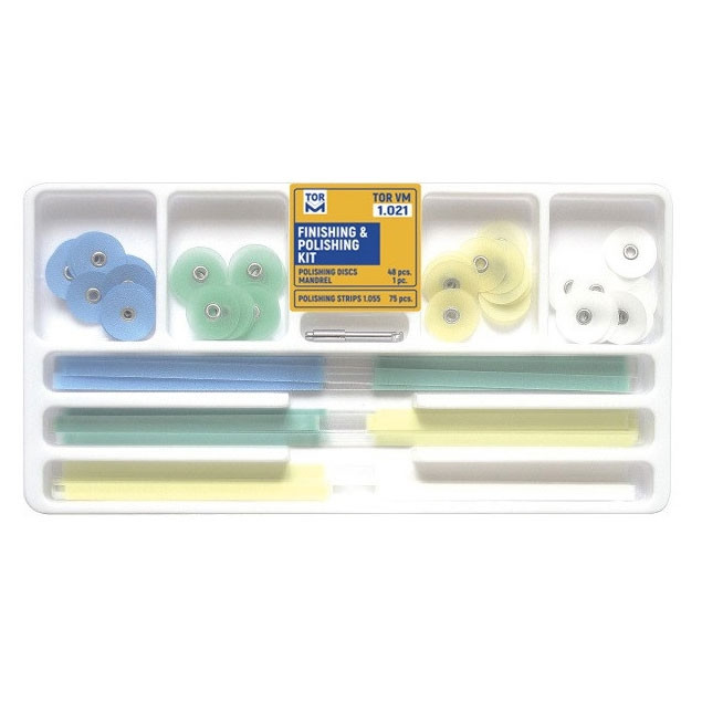 Tor VM 1.021 یک کیت کامل شامل ۴۸ عدد دیسک مرکزدار است که برای ترمیم، پرداخت و پولیش مواد دندانی طراحی شده است. مرکز مشخص دیسکها باعث نصب سریع و دقیق روی ابزارهای مخصوص میشود و کاربری آسان را فراهم میکند.
